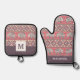 Pink Ethnic Elephant Pattern Oven Mitt & Pot Holder Set