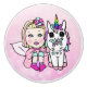 Adorable whimsical folk art style Pink Fairy and Unicorn.