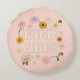 This charming and cheerful fall design features the phrase "Fall Vibes" in a soft, retro-inspired font that evokes a sense of nostalgia and warmth. The text is surrounded by an array of hand-drawn flowers in pastel shades of pink, yellow, orange, and purple, giving the design a delicate and whimsical feel. The soft pink background enhances the gentle and soothing aesthetic, making it perfect for those who appreciate a more subtle and feminine approach to autumn decor. The combination of the vintage-style typography and the floral accents creates a design that is both playful and elegant.