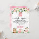 Cute farm themed birthday thank you card featuring a cute watercolor barn, pig, cow and horse as well as lovely floral arrangement. The back of the card is a pink plaid pattern.