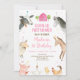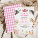 Cette adorable invitation présente des animaux de ferme avec des casquettes de fête et des confettis.