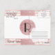 Pink Faux Glitter and Floral Brush Stroke Stripes Postcard