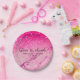Pink Faux Glitter Marble Pattern Wedding Thank You Paper Plate