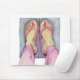 Coloured pencil illustration of a pair of feet in casual pink slippers, thongs or flip-flops, a fun card or gift for those who like whimsical, humourous pieces, who like pink, wish to say hello with humour, or who like feet! Lovely matching card, stamp, sticker, magnet, mug, apron, tie, t-shirt.