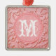 Pink Filigree Wood Carving Floral Glam Glamour Swirl Monogram Initial Christmas Ornament Personalized