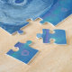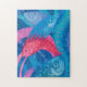 Puzzle featuring colourful artwork, blue and pink fishes bouncing in water streams. Pastel painting, underwater animals, decorative art. This work will be a great gift for fishermen or Pisces.