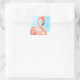 A pink flamingo and a pastel sky blue watercolor background fill the front of this square sticker seal. Created to coordinate with cards and envelopes also for sale in my store, with its pastel colour scheme, it is especially beautiful for summer occasions.