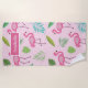 This is personalized beach towel with pink flamingos pattern with tropical leaves on light pink background. It's great summer gift specially for travel. This cute design has custom name that you can change to your own name using personalize button