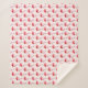 A Christmas sherpa blanket with a fun pattern of pink flamingos in Santa outfits on a pink background.