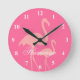 Pink flamingo bird wall clock with custom text. Cute tropical bird decor for home or office. Personalizable text.