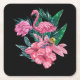 Pink Flamingo Bird Watercolor Artwork Square Paper Coaster