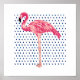 Pink Flamingo Bird Watercolor Dot Pattern Poster