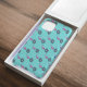 pink Flamingo & blue flower pattern on teal Case-Mate iPhone Case