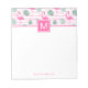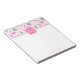 This personalized notepad features a watercolor flamingo design in shades of pinks and greens. Use the template form to add your personalization to the shape in the centre and the line at the bottom.