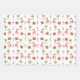 Christmas holiday 3-sheet coordinating wrapping paper set. Sheet 1 has tropical palm trees and pink flamingos wearing red Santa hats. Sheet 2 is tiled with cute snowmen. Sheet 3 has red wrapped presents tiled in a pattern across the sheet.