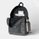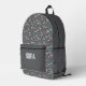 This backpack features a fun pink flamingo design, a personalized name, and a cute grey pattern printed directly onto the material for a durable, seamless, and attractive look.