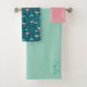 Pink Flamingo cute tuquoise teal pattern Bath Towel Set