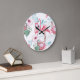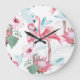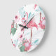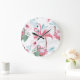 Pink Flamingo: Exotic Flowers Seamless. Large Clock