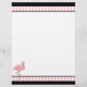 Flyer done in white, with a black and a pink striped border, on the top and bottom. Graphics of a pretty pink flamingo decorates the bottom left corner of the flyer. Customize to add your own text.