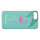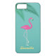 An illustration of a bright pink flamingo on a turquoise background decorates this iPhone 7 case, reminding us of warm sunny places. This fun, summery case is easy to customize with your own name, monogram or wording you prefer.