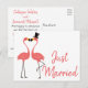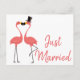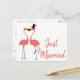 Pink Flamingo Just Married Tropical Wedding Love Announcement Postcard