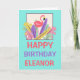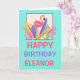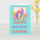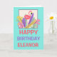 Pink Flamingo Leaf Name Happy Birthday Card