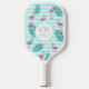 Pink flamingo mint green stripes palm leaves name pickleball paddle