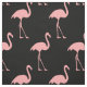 Pink flamingo pattern textile fabric. Custom printed textile. Fun DIY project supplies and accessories for adults and kids. Make your own clothing, decorations and more. Tropical bird design with black background.