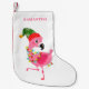 Pink flamingo personalized small Christmas stocking. Easy to change the text. Cute watercolor design.