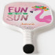 Cute fun in the sun pink flamingo pickleball paddle with silver sparkle accents. Customizable with your own text. Great gift for the pickle ball lover in your life!