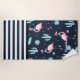 Pink Flamingo Santa Hat Navy Blue Striped Beach Towel