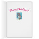 Verse : "MERRY CHRISTMAS!". A SMILE MAKER FOR THE HOLIDAYS. FLAMINGO SNOW GLOBE CHRISTMAS GREETING/NOTE CARD/Envelope Blue Polka Dot Border *Customize ....Look For Matching Items Susan Brack Design