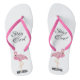 Keep your feet looking cool this summer with our pink and white pink flamingo women's flip flops adorned with a watercolor pink flamingo the words stay cool. Add your name to the heel of each flip flop