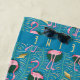 This pretty, original flamingo pattern has a retro Art Deco twist with a geometric motif. Made in bright shades of pink, golden yellow and green on a field of turquoise blue, this elegant, tropical pattern also includes fern fronds. Personalize this beach towel with your name. When you use the text template, your name will appear on both ends of the towel (upside-down at the top, for easy viewing while you're sunbathing). Head to the beach in style with this beautiful flamingo towel!