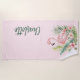 A feminine blush pink background decorated with a pink flamingo and tropical flowers and foliage. Personalize and add a name