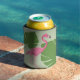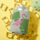 The can cooler features an adorable pink flamingo design, standing amidst lush green monstera leaves, set against a soft, tranquil green background that conjures images of a serene tropical paradise. It's perfect for creating a cohesive look for your summer barbecues, pool parties, or any event where a cool beverage is a must.