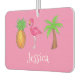 Air freshener features an original illustration of a pineapple, pink flamingo, and tropical palm tree. Simply personalize with your information.