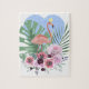 Pink Flamingo tropical leaf palm monstera Jigsaw Puzzle