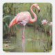 Pink Flamingo Water Lilies And Reeds Oil Painting, Square Sticker