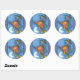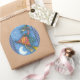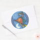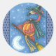 PINK FLAMINGO WITCH, FLYING OVER MOON ON A BROOM CLASSIC ROUND STICKER
