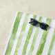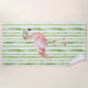 Pink Flamingo with Sunglasses Green Stripes Beach Towel