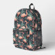 Pink flamingoes and sage green fern pattern in a watercolor effect.
