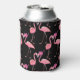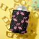 Experience the tenderness of two pink flamingos against a black background in this vintage seamless pattern.