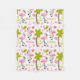 A fleece blanket featuring a pattern with illustrations of pink flamingos, palm trees, sand dollars, anchors, leaves, and flowers. Personalize the name.