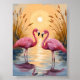 Pink Flamingos Sunset Animal Painting Poster