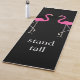 Bright pink flamingos and type that says stand tall, decorates this yoga mat on a black background, making it perfect for you next yoga class. The saying, stand tall, on this yoga mat can easily be personalized to say any you prefer. The back of this mat is white to keep the cost down.