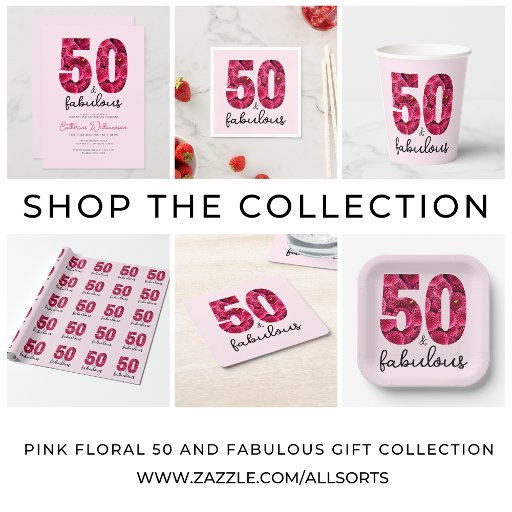 Pink Floral 50 and Fabulous Birthday Party Invitation