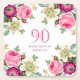 Pink Floral 90th Birthday Square Paper Coaster