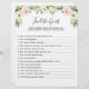 A fun baby shower game, "Find the Guest" invites your shower guests to meet other guests to get answers to a list of questions about them. It serves as a great icebreaker in getting your shower guests to interact with each other and get to know one another. This game sheet is embellished with blush pink floral bouquets and greenery to match the other items in this sweet baby shower collection.