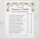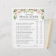A fun baby shower game, Guess Who - Mommy or Daddy invites your shower guests to answer a list of questions about which parent will do certain things first, etc. Have the parents fill out their responses in advance on one of the game sheets and use that as the method of scoring the answers of your guest. Whoever gets the most answers correct wins a prize! This game sheet is embellished with blush pink floral bouquets and greenery to match the other items in this sweet baby shower collection.